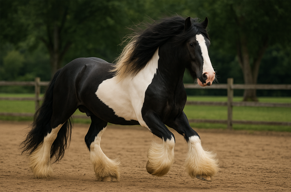 De linaje europeo y elegancia incomparable, el Gypsy Vanner cautiva con su presencia majestuosa, abundantes crines y temperamento dócil.